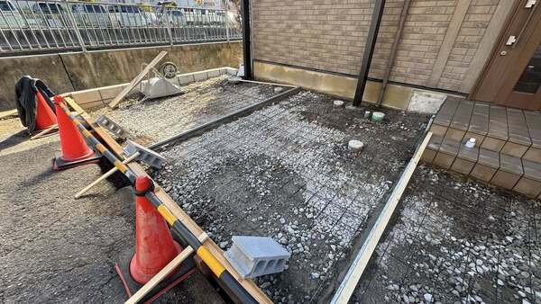 土間コンクリート型枠、ワイヤーメッシュ敷き(守口市)