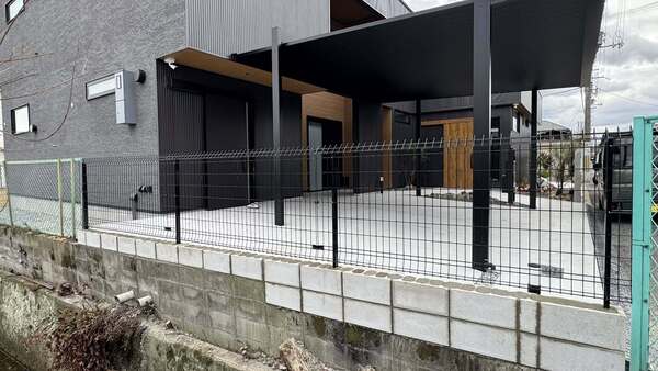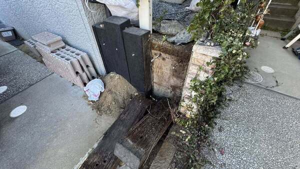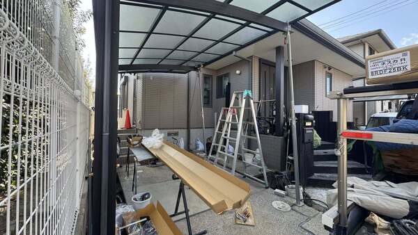 既存カーポートの傾き補正と、サイクルポートの合掌取付