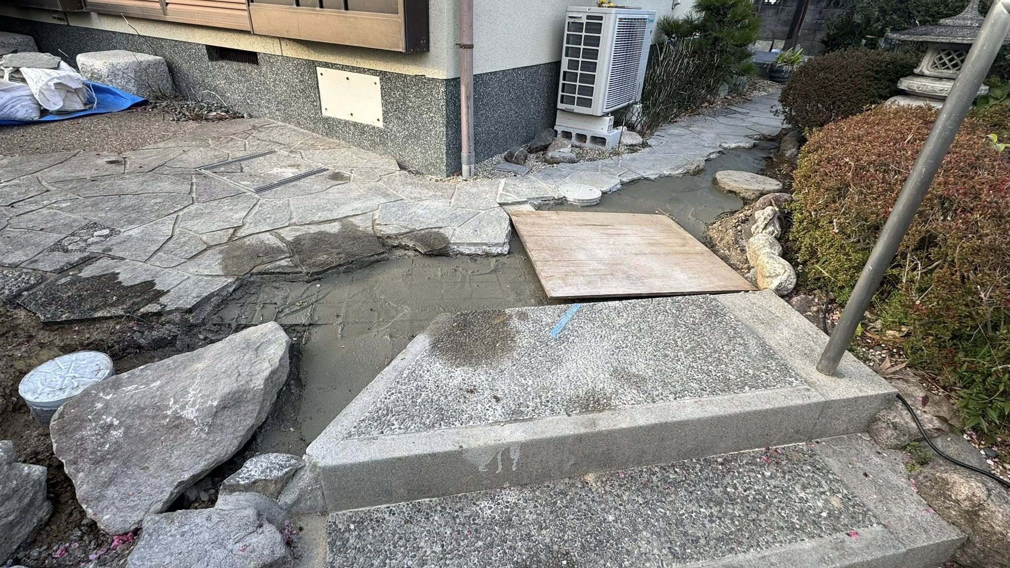 諏訪鉄平石乱張りの下地コンクリート 2026.03.06 外構 先日、汚水排水管の経路変更の際に斫った、諏訪鉄平石の土間コンクリート下地の施工をしました。今回斫った土間部分は埋め戻し氏転圧しましたが、土間が沈下する恐れがあるため、既存土間下地の小口に穴を明けメッシュ筋を差し込み土間の縁が切れにくい様にしました。 PDFを開く