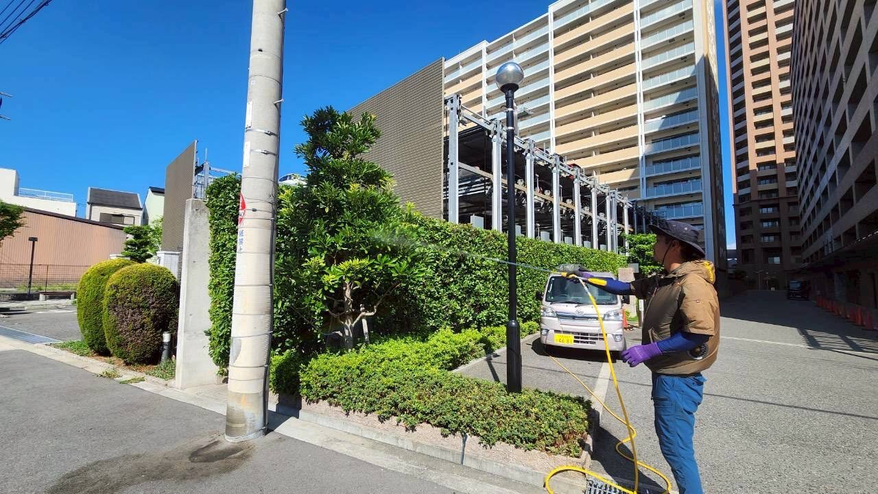 薬剤散布業務 2025.08.22 植栽 年契約させていただいているマンションの薬剤散布(2回目)をさせていただきました。多くの住民の方がおられるため、安全管理の為に2人組で通行者の確認等を行いながら、慎重に作業に努めています。 PDFを開く