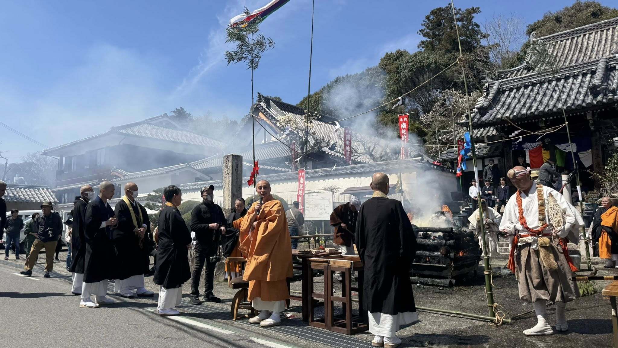 奈良にある雨乞いの寺・寄足山 生蓮寺の地蔵花式の紫灯大護摩のてるてる坊主のお焚き上げに、しらさぎ310商友会を代表して参加させていただきました。去年の6月に白鷺駅前で行った行った、しらさぎ310商友会主催の〝レインボウズ展〟で出展されたてるてる坊主を生蓮寺に奉納、毎年この3月24日に大護摩の際にお焚き上げされます。年に一度でもこのような儀式に出席させていただくと、身の引き締まる思い、厄除けされた様な清々しい気持ちになります。