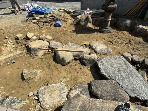 景石の組み換え(堺市堺区個人邸 日本庭園)