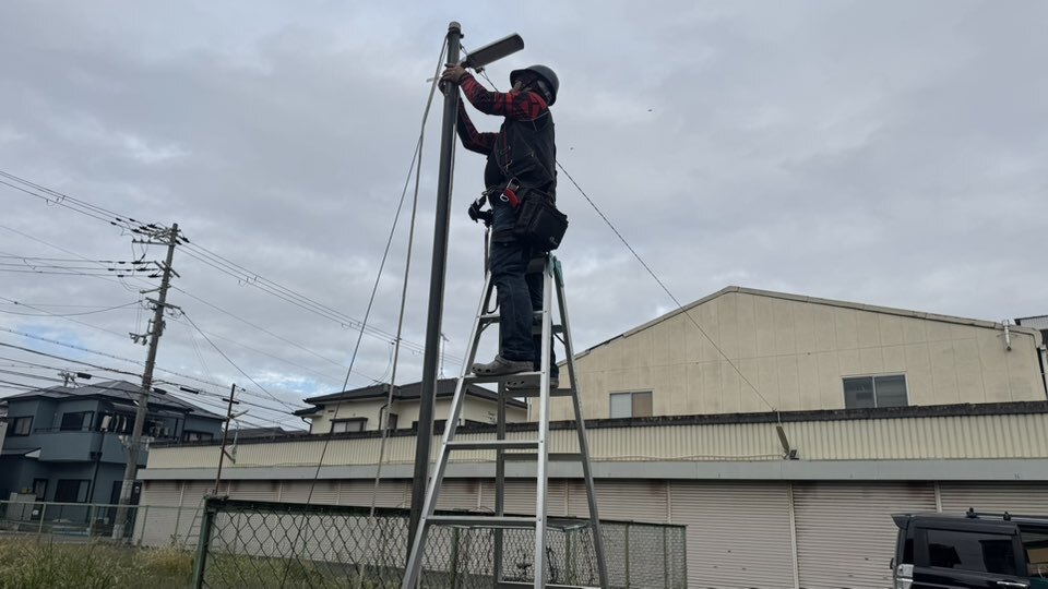 駐車場灯、LED器具への交換(堺市東区) 2025.10.26 その他 場内に4灯ある駐車場灯(壁付け2台、ポール式2台)のうち、2台の蛍光灯の交換依頼がありましたが、1台は灯具を固定するビスがサビで回らず傾向との交換が困難な為、器具交換が必要でした。今後、各電器メーカーが蛍光灯の生産を終了するためLEDへの器具交換が余儀なくされます。今回、LED器具への交換は1台だけですが、交換の人件費は1台でも4台でも同じため、前倒しで4台すべての器具交換を提案し、工事をさせていただきました。 PDFを開く