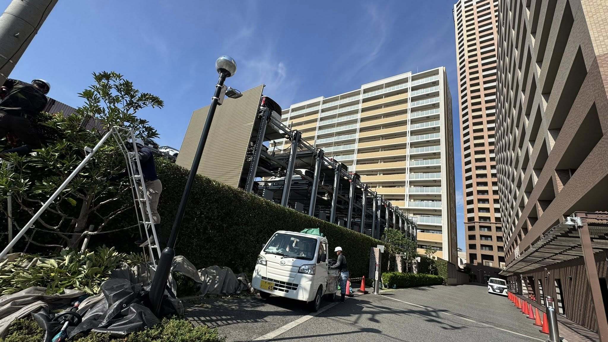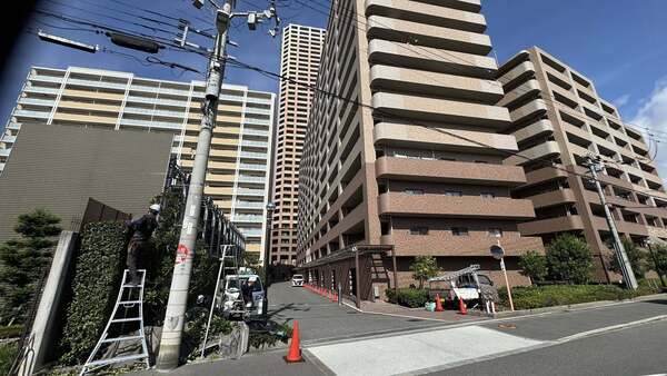 大阪市港区のタワーマンションの高木剪定をさせていただいています。