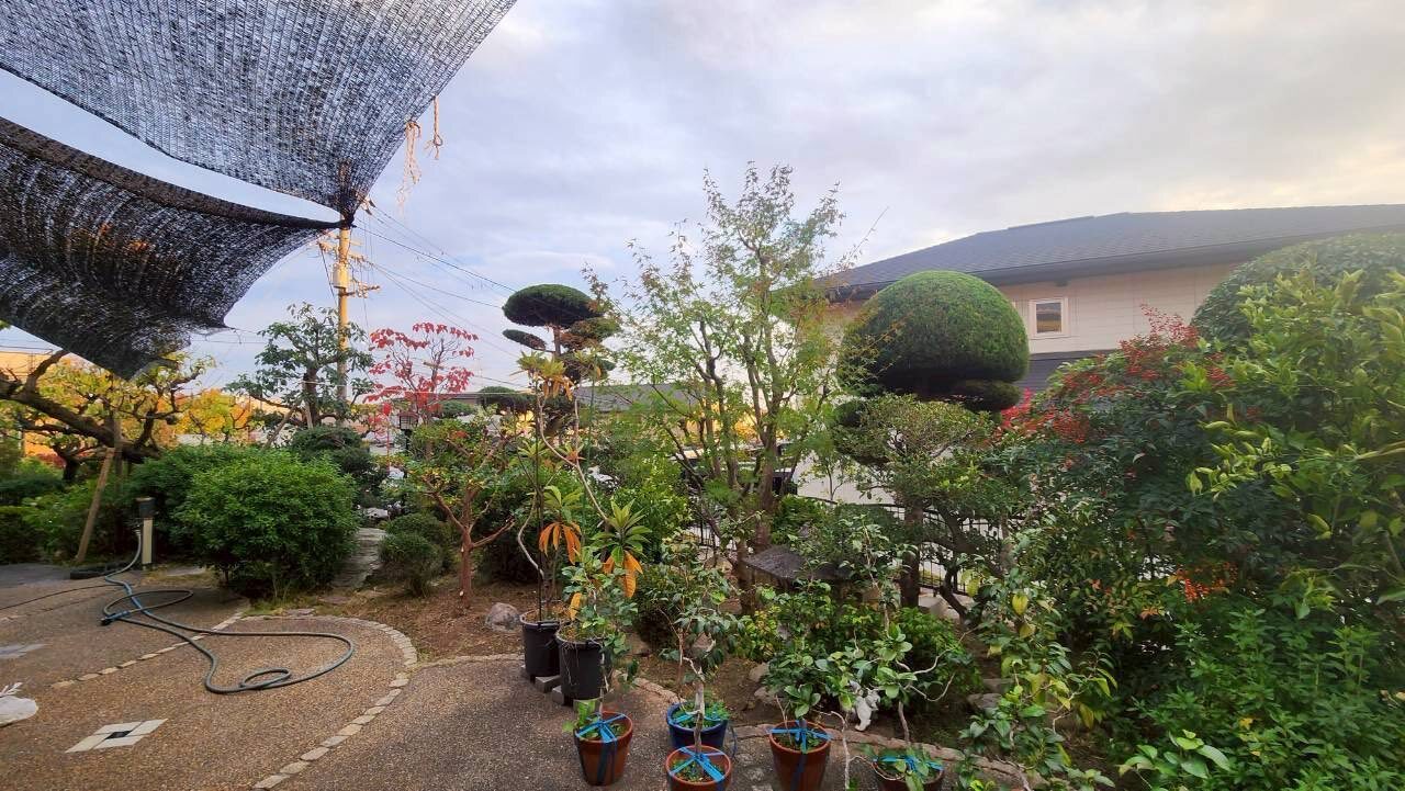 庭園剪定業務(年一回) 2025.11.17 植栽 吹田市内の20年来のお客様で当初は初夏に低木を中心とした剪定。年末に高木剪定をさせていただいておりました。リタイヤ後は、低木の剪定はご自分でされて、年末の高木剪定をさせていただおいていました。最近は草引きもしんどくなったとのことで、専ら家庭菜園を楽しんでおられます。ここ数年は脚立に乗っての作業や高低差のある場所を中心に年一回、2人×2日の剪定作業をさせていただいています。 PDFを開く