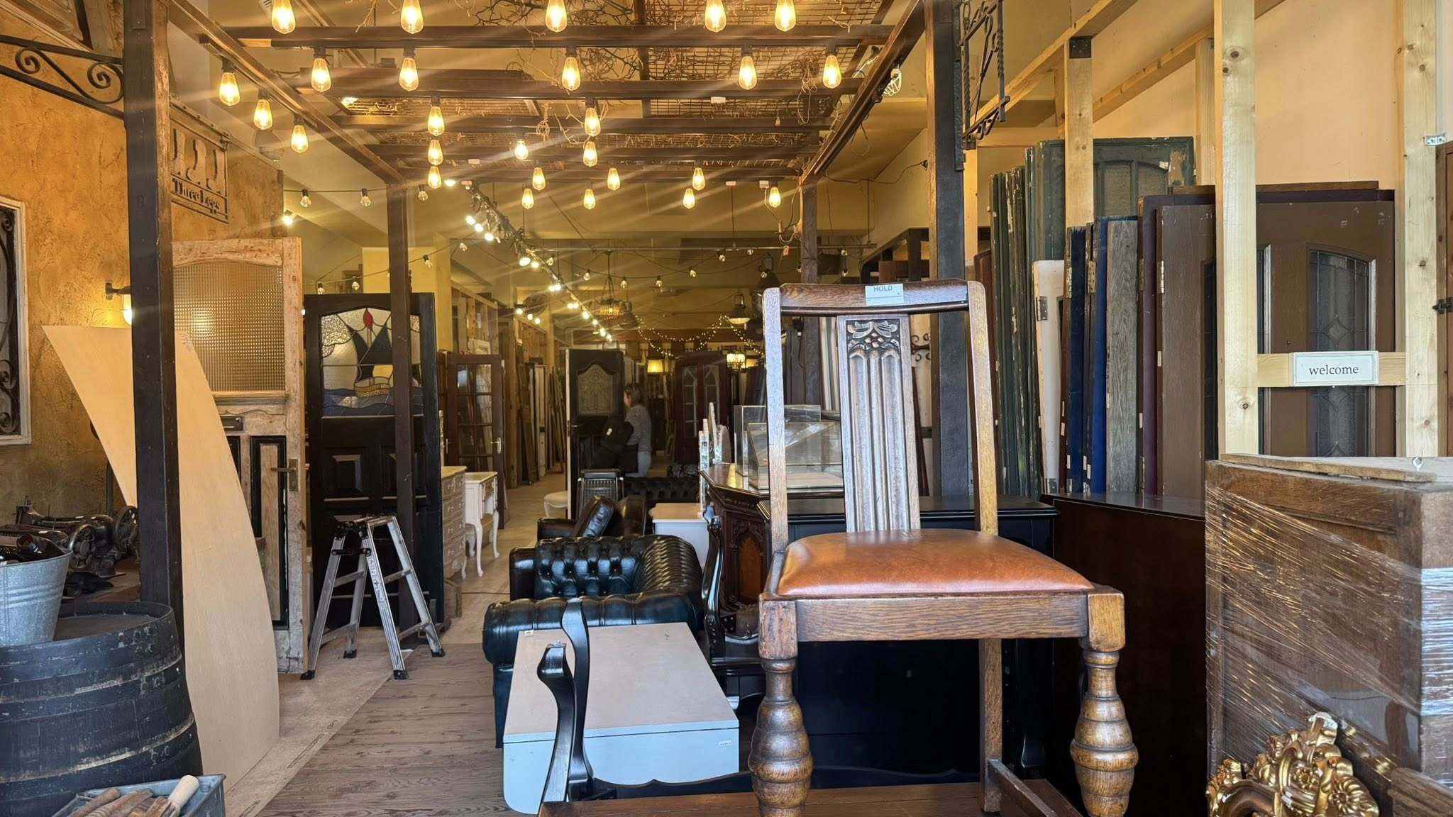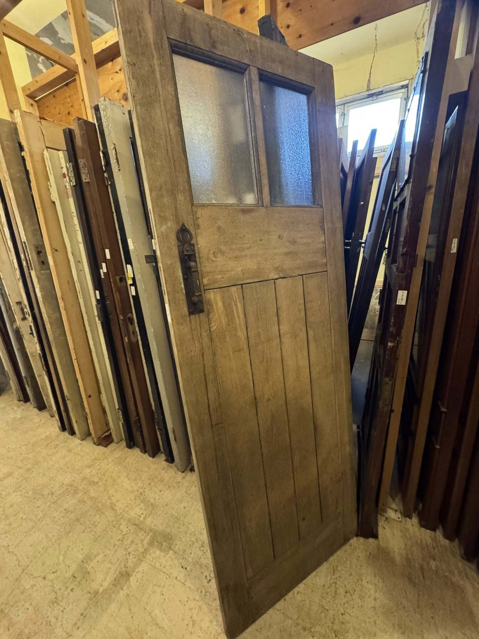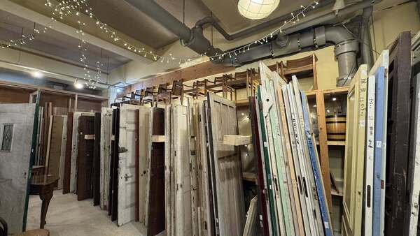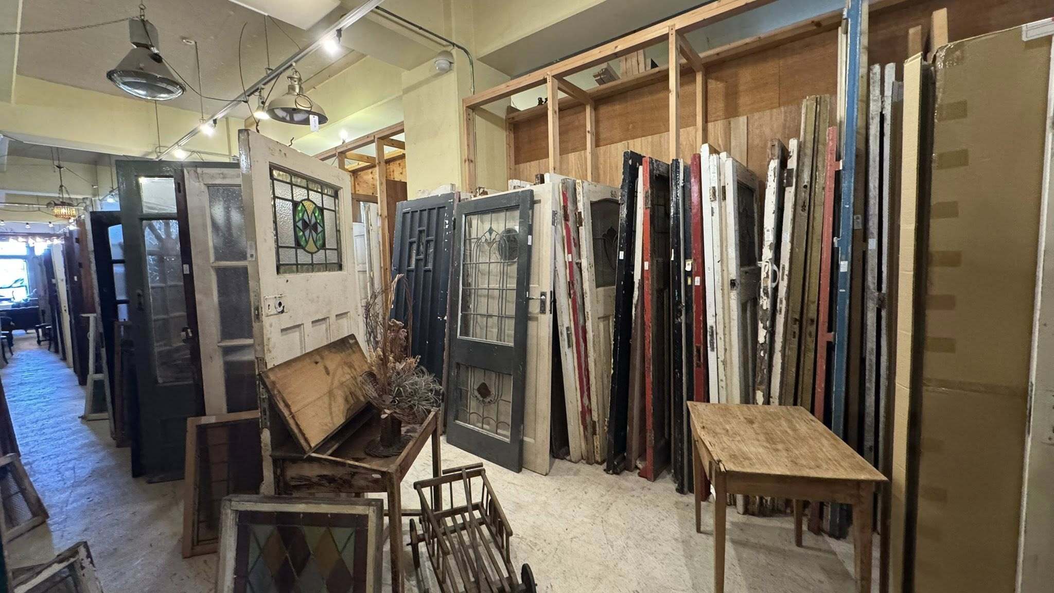 アンティーク扉のショールーム打合せ 2025.12.10 その他工事 マンションリフォームのための扉を探しに京都のアンティークショップにお客様と打合せに来ました。毎年秋にコンテナいっぱいに買い付けに行かれるそうで、先日セールが終わったばかりだそうで、目を惹く扉には〝SOLD〟の紙が貼られています。主に、玄関扉が多く、小ぶりな扉から売れていく傾向があるみたいです。 PDFを開く