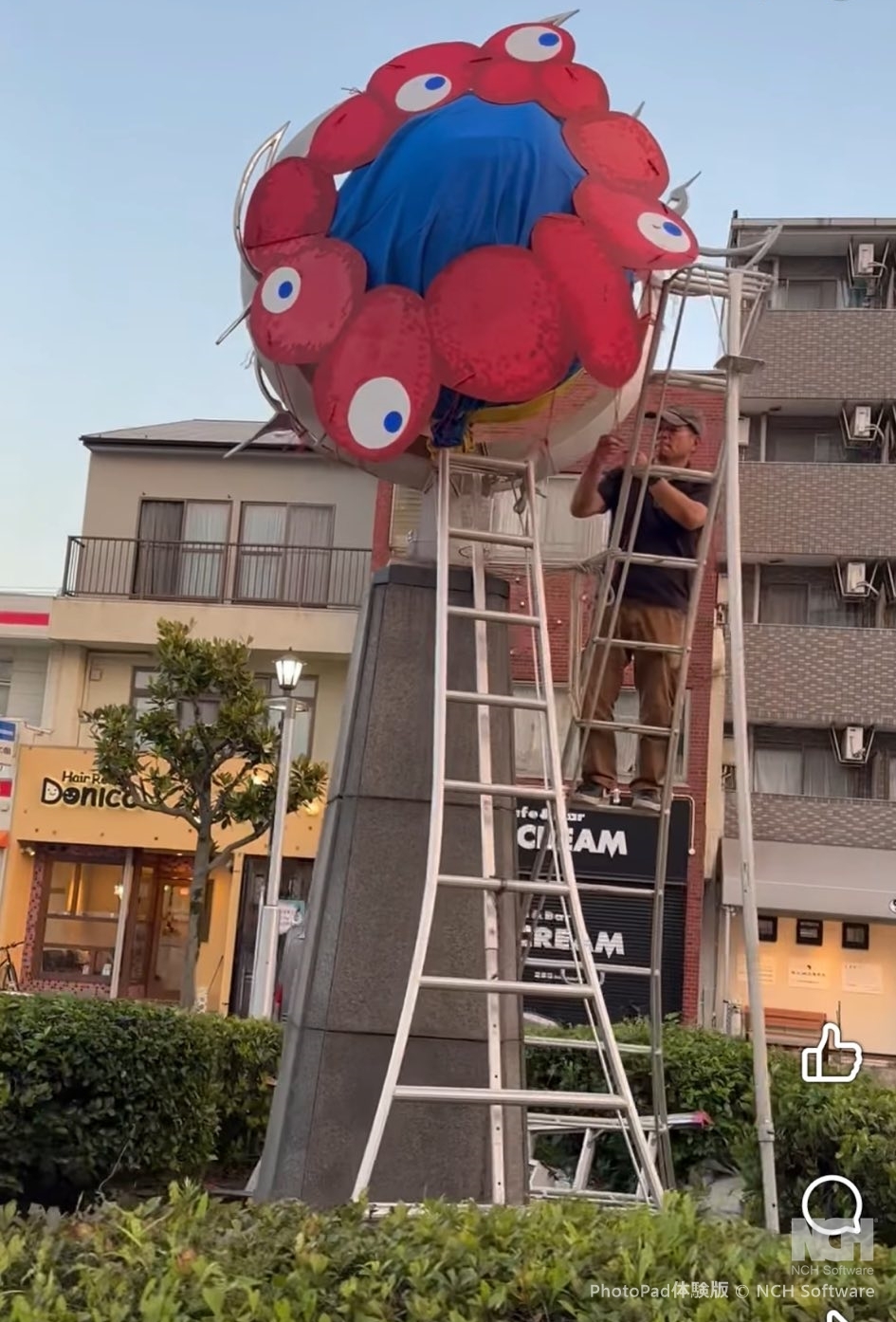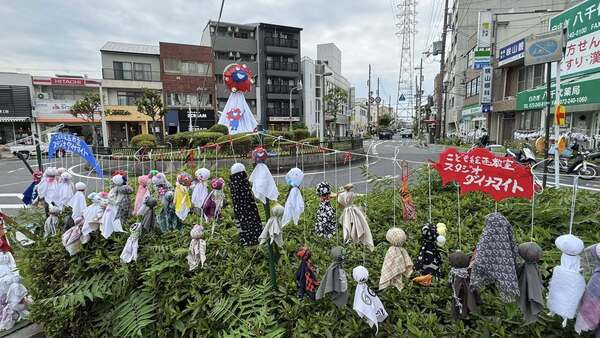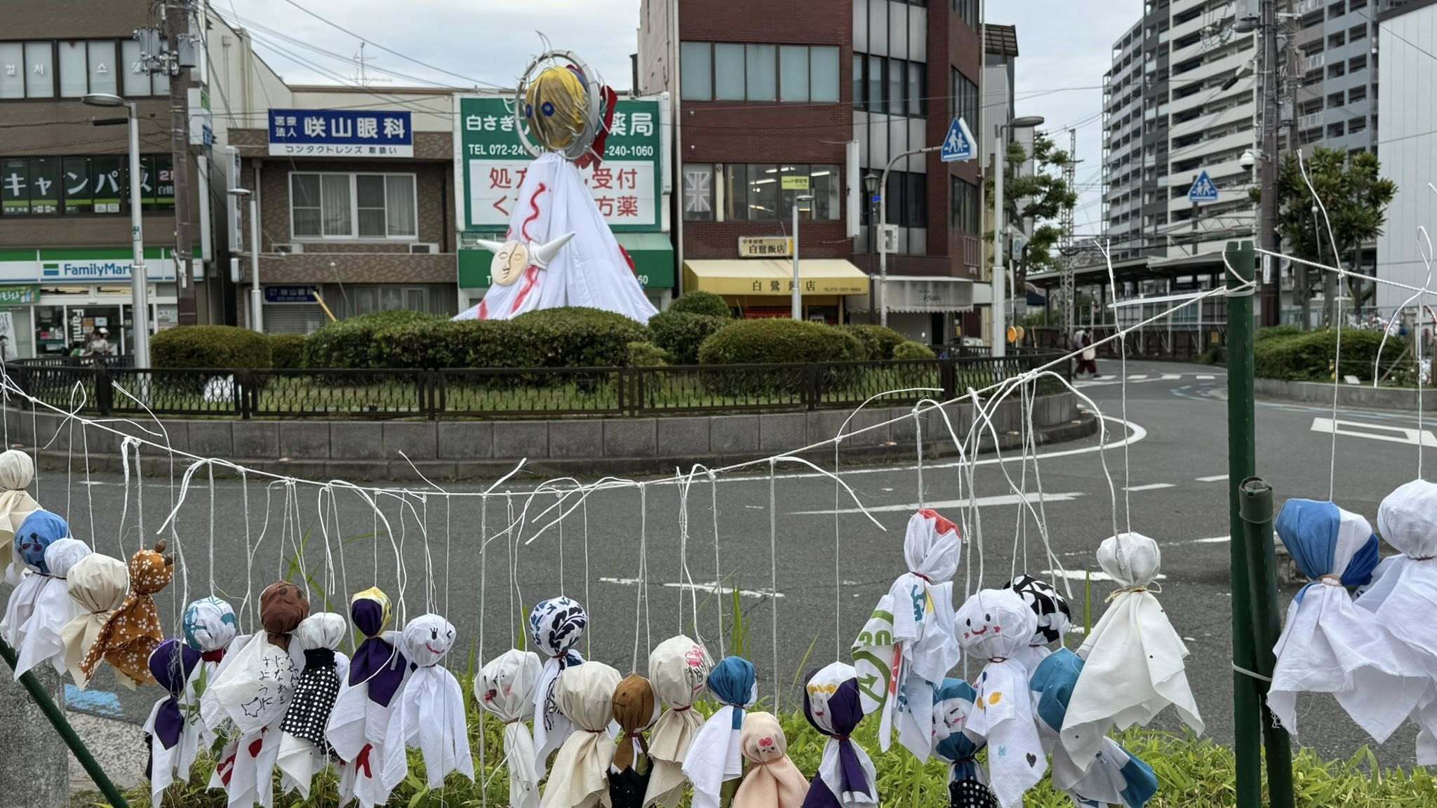 弊社が加盟している〝しらさぎ310商友会〟主催し、大阪公立大学の学生ボランティアの皆さんの協力で2017年より続いている〝しらさぎレンボウズ展〟が開催しました。年に2回、6月と12月に商友会としてキャンペーンをしているのですが、6月は梅雨期であり、また地元堺の世界遺産の古墳が前方後円墳と〝てるてる坊主〟と似ているとの事で、駅前ロータリーのモニュメントをてるてる坊主のシンボルアートにしています。しらさぎ310商友会のアート担当として弊社代表の西川が、てるてる坊主の顔を描かせていただいています。