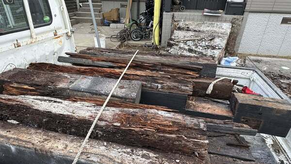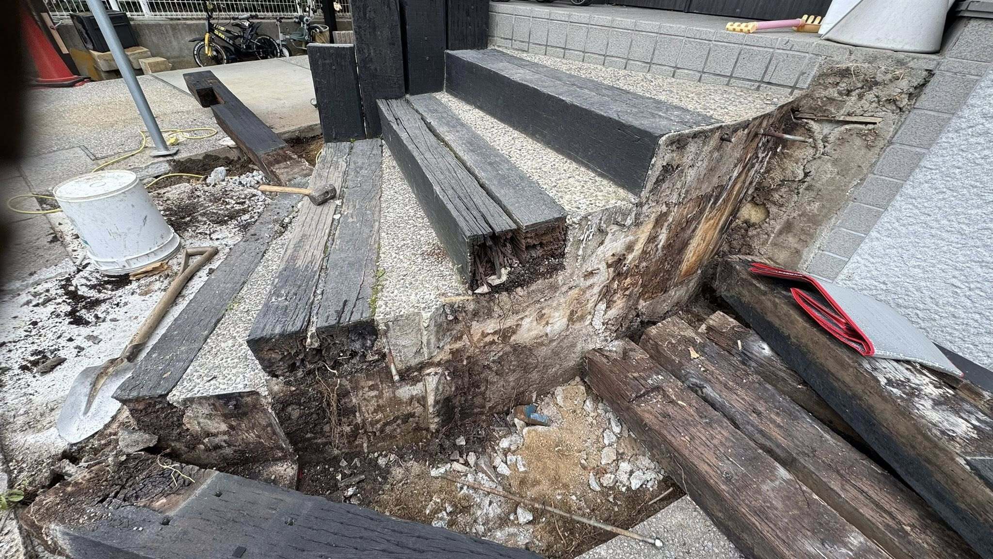 エクステリアにおける木材の腐朽(3) 2026.02.06 外構 堺市東区での枕木外構のアプローチ階段の解体が完了しました。枕木に使われる木材は丈夫で比重が重いため燃えにくい木質であるため、処分費が割高になってしまします。 PDFを開く