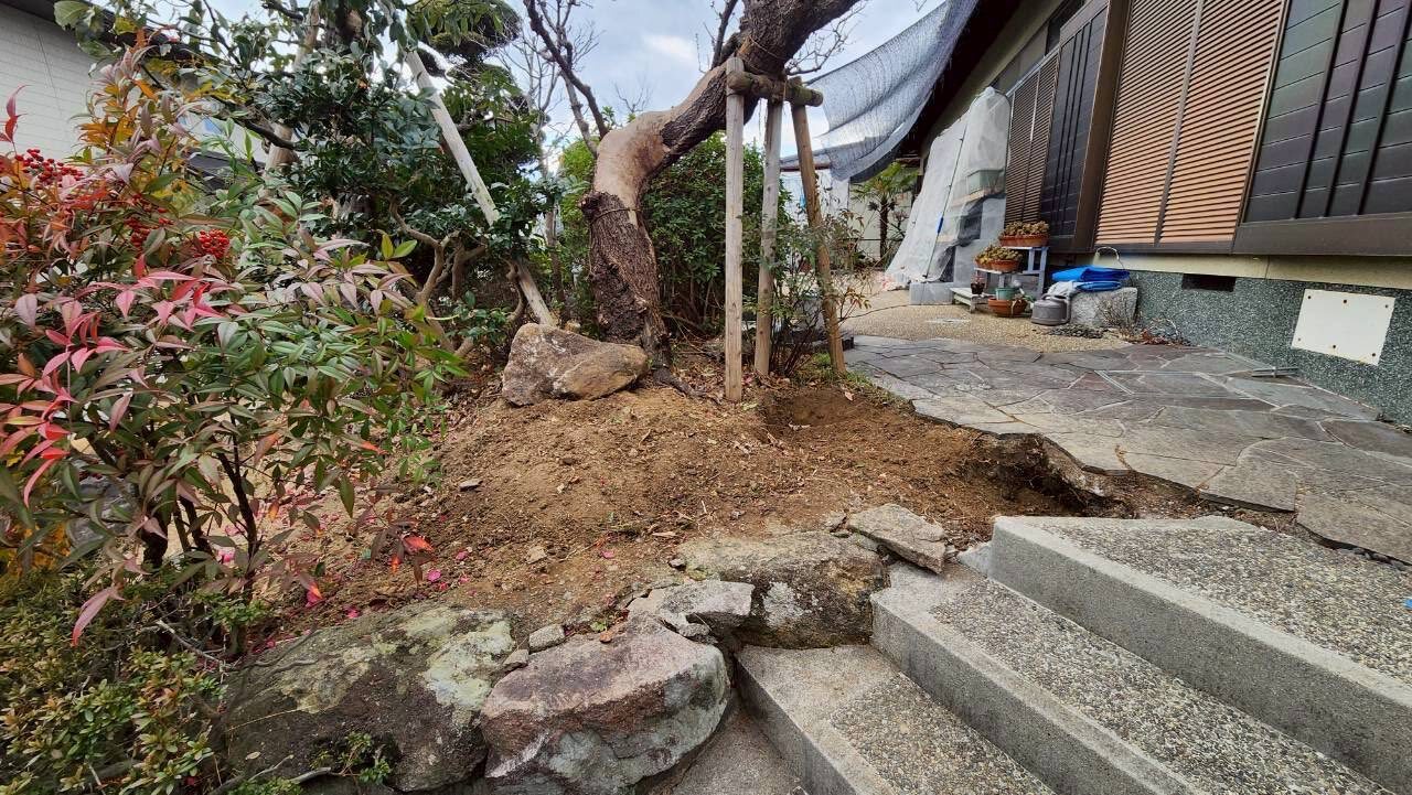 庭木の撤去・アジサイの移植(吹田市)