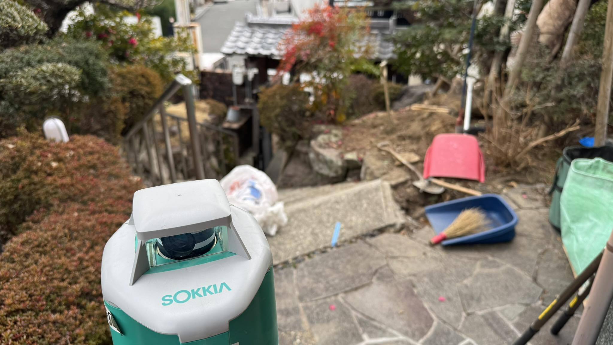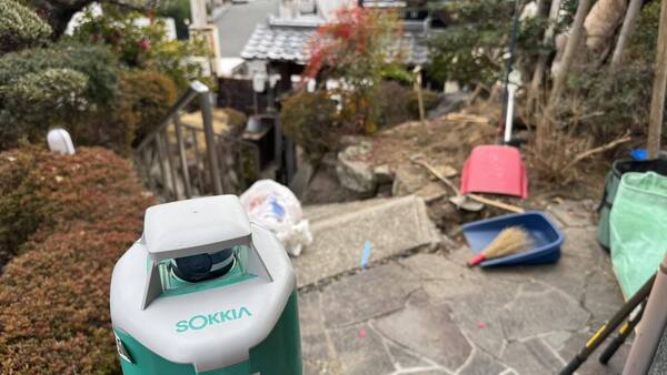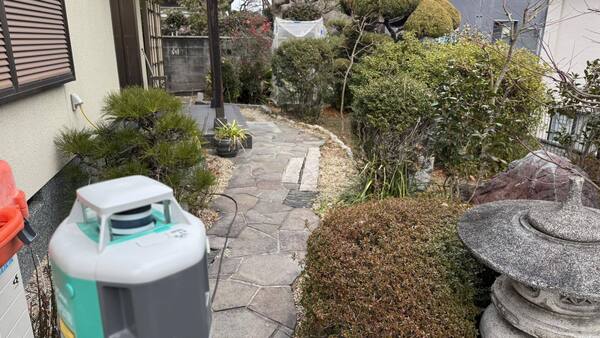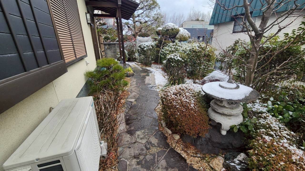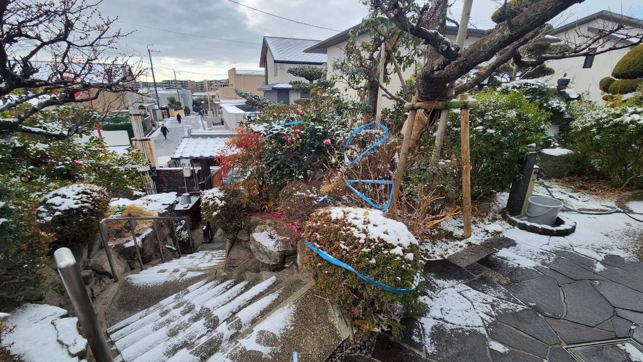 千里ニュータウンの高台のお宅の、汚水排水管の植木の根の詰まりによる配管経路変更工事に伴う、樹木撤去を行いました。この日は積雪の中千里ニュータウンの坂道が雪で通行困難な為、近隣で一時間以上待機してからの作業となりました。また、この日程に合わせて排水管の勾配を測定しましたが、約15mで15cmと1/100しかなく、しかも配管を迂回させるため将来的なトラブルが予測されます。庭の雰囲気を壊さないように2か所だけ直径300の会所を設け、将来起こった際のトラブルに対応しやすい様に対策することとなりました。