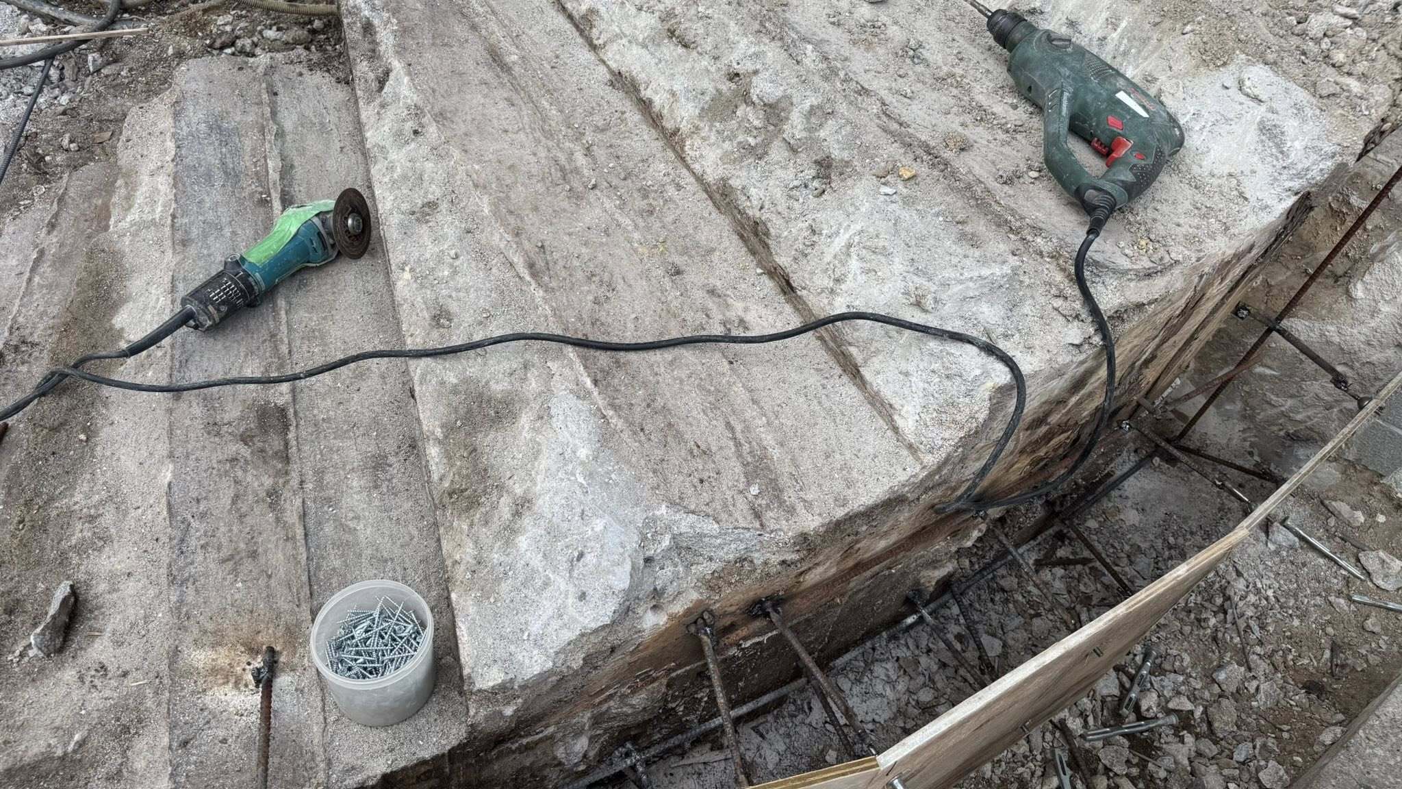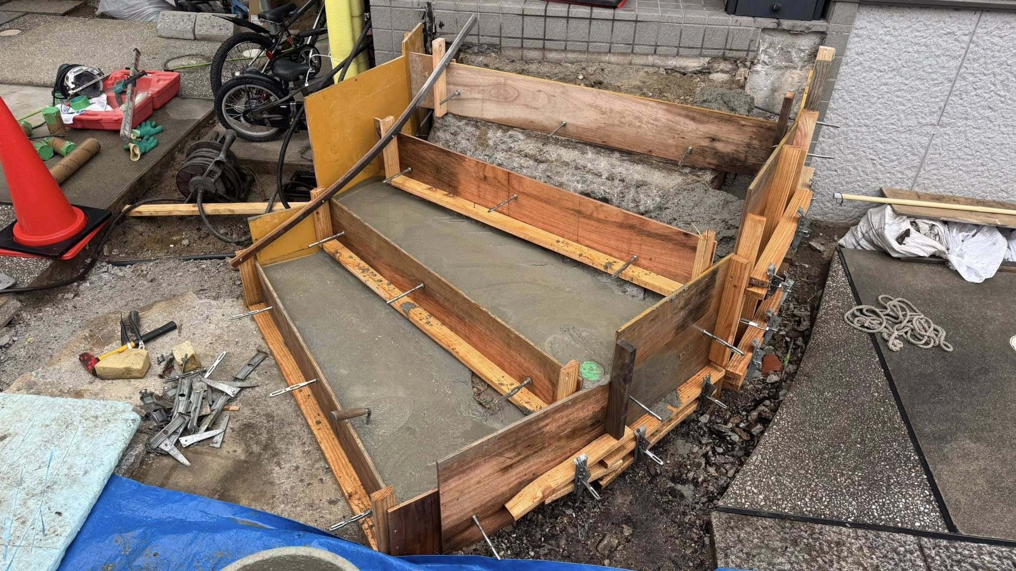 アプローチ階段の幅増しの為の型枠設置(堺市東区)