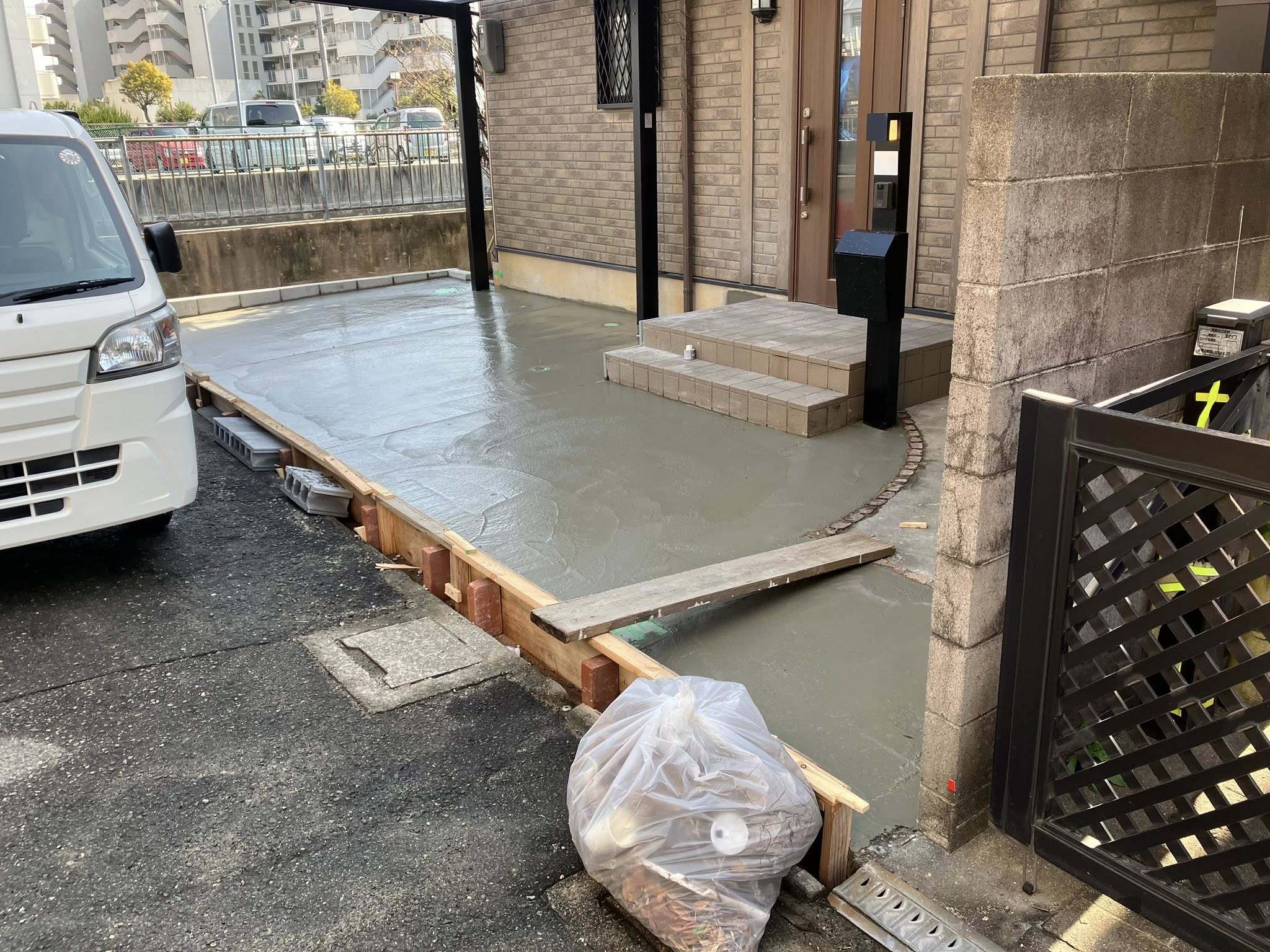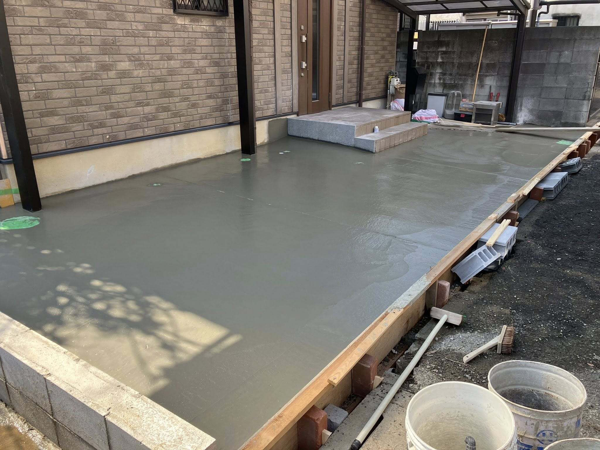 土間コンクリートの打設(守口市) 2026.02.23 外構 夏場の暑い日は夕方になればコンクリートも固まりますが、冬場は暗くなっても固まりきらないことがあります。コンクリートの水分が引きを確認し数度にわたり金鏝で押さえます。 PDFを開く