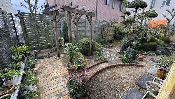 土蔵撤去跡レンガ基礎を活かした洋風ガーデン
